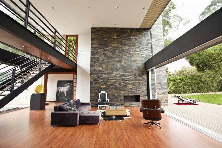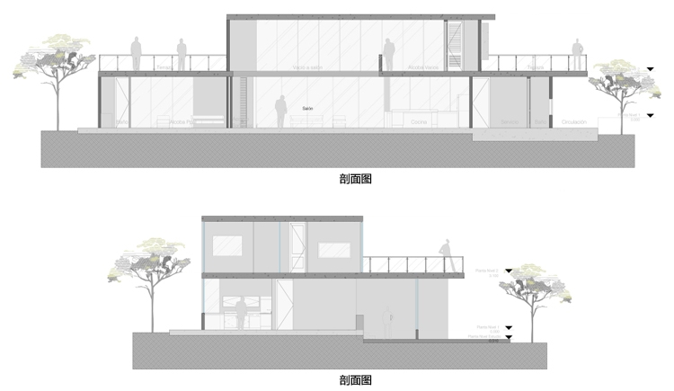 別墅設計,Olaya別墅(Olaya House)Olaya別墅位于哥倫比亞Medellin市中心大概45分鐘的車程,房屋的首層采用統一樣式的磚塊鋪筑而成,但各功能分區布局規整、明確,包括服務區、活動區和私人區。服務區域包括車庫、傭人房、洗衣房和貯藏室。活動區內設有一個巨大的廚房并與用餐區和主客廳相對,通過一道甲板式通道便可來到院落。私人區有三個我是,每一個房間都帶有獨立衛生間、浴室和更衣室。活動區與私人區被一道巨大的黑色磚墻所隔開,不論從室內還是室外都可以看到這道墻,同時墻體也是房屋主結構之一,墻體內部設有一個公共于是和兩個獨立的煙囪,分別服務于主臥和主客廳的通風。經過位于一層服務區的風格化樓梯便可以來到二層:這里簡單舒適,分為兩個寬敞的區域,一個是書房一個是主臥,另外還設有兩個巨大的露臺陽臺,可以從這里欣賞外面的風景。值得一提的是,露臺與房屋由一座小橋連接。