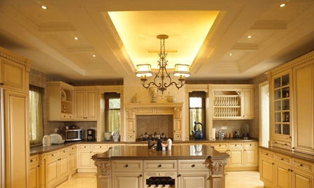 與普通消費(fèi)者相比,別墅的房主更注重整體廚房的美學(xué)效果、藝術(shù)協(xié)調(diào)和品牌。簡(jiǎn)單地說(shuō)即是整體的設(shè)計(jì)感、個(gè)性化,同時(shí)功能要齊全。廚房可以顯示主人的品位,這種品位主要體現(xiàn)在一些有創(chuàng)意的設(shè)計(jì)上,別墅廚房吊柜可以設(shè)計(jì)一些玻璃門(mén)或吊格,柜內(nèi)安裝圓杯燈,便于存放收藏品或書(shū)籍。